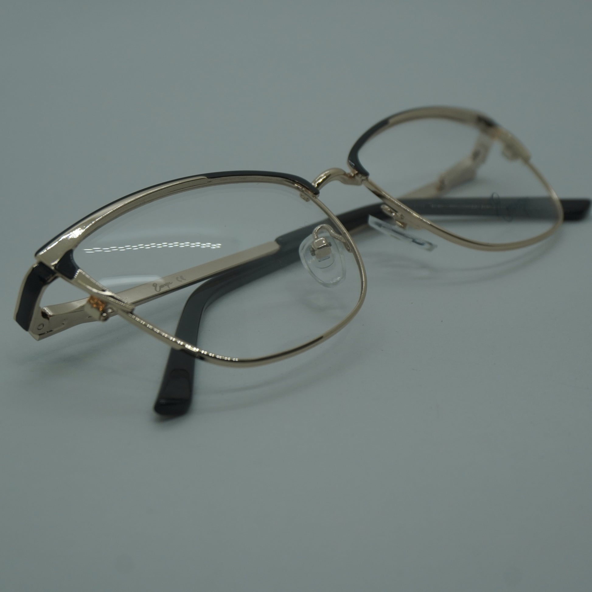 Estas gafas destacan por su forma clásica semi al aire y su estructura ligera, ideales para un estilo sofisticado y cómodo. Su combinación de metal dorado y detalles en negro las convierte en una opción versátil y elegante para cualquier ocasión.