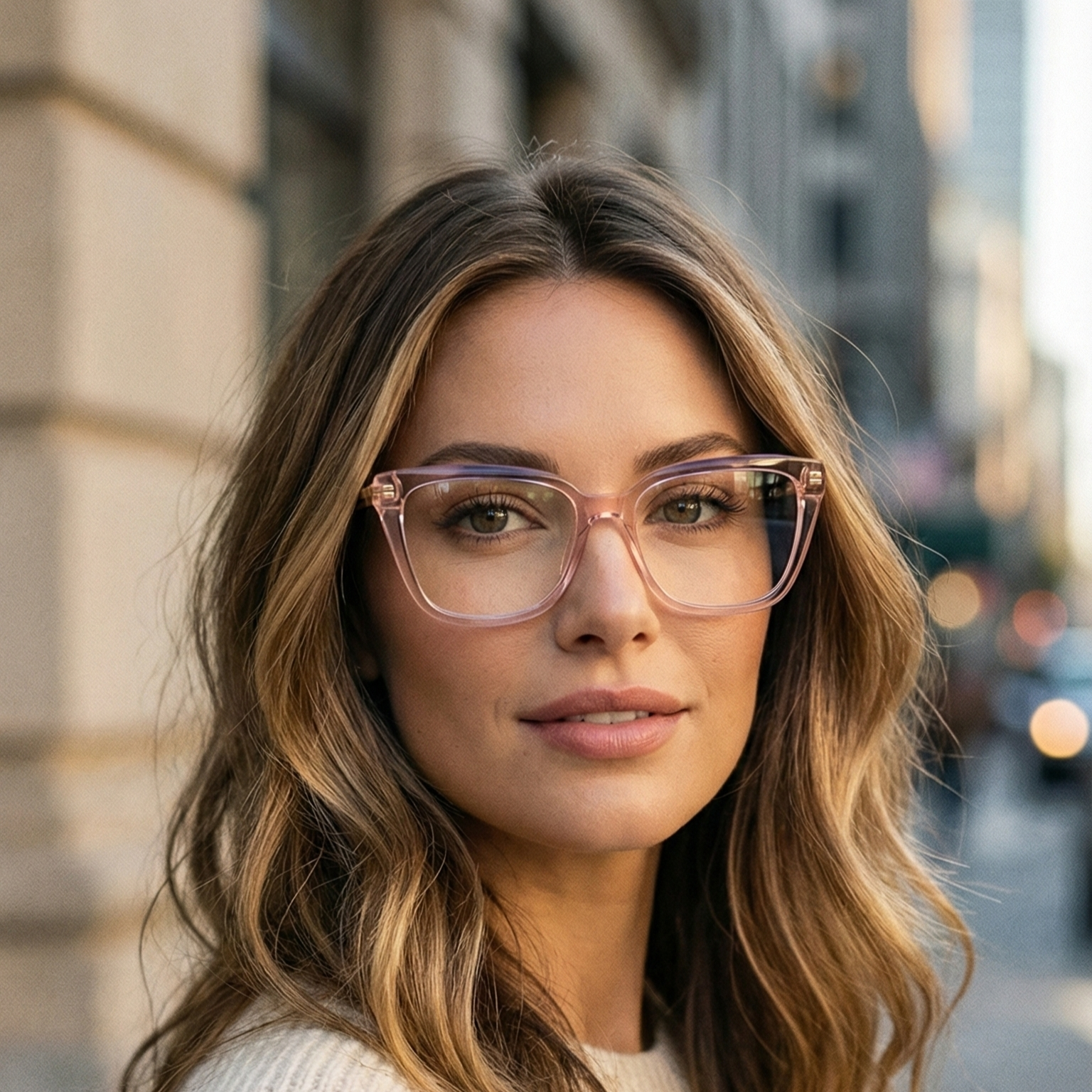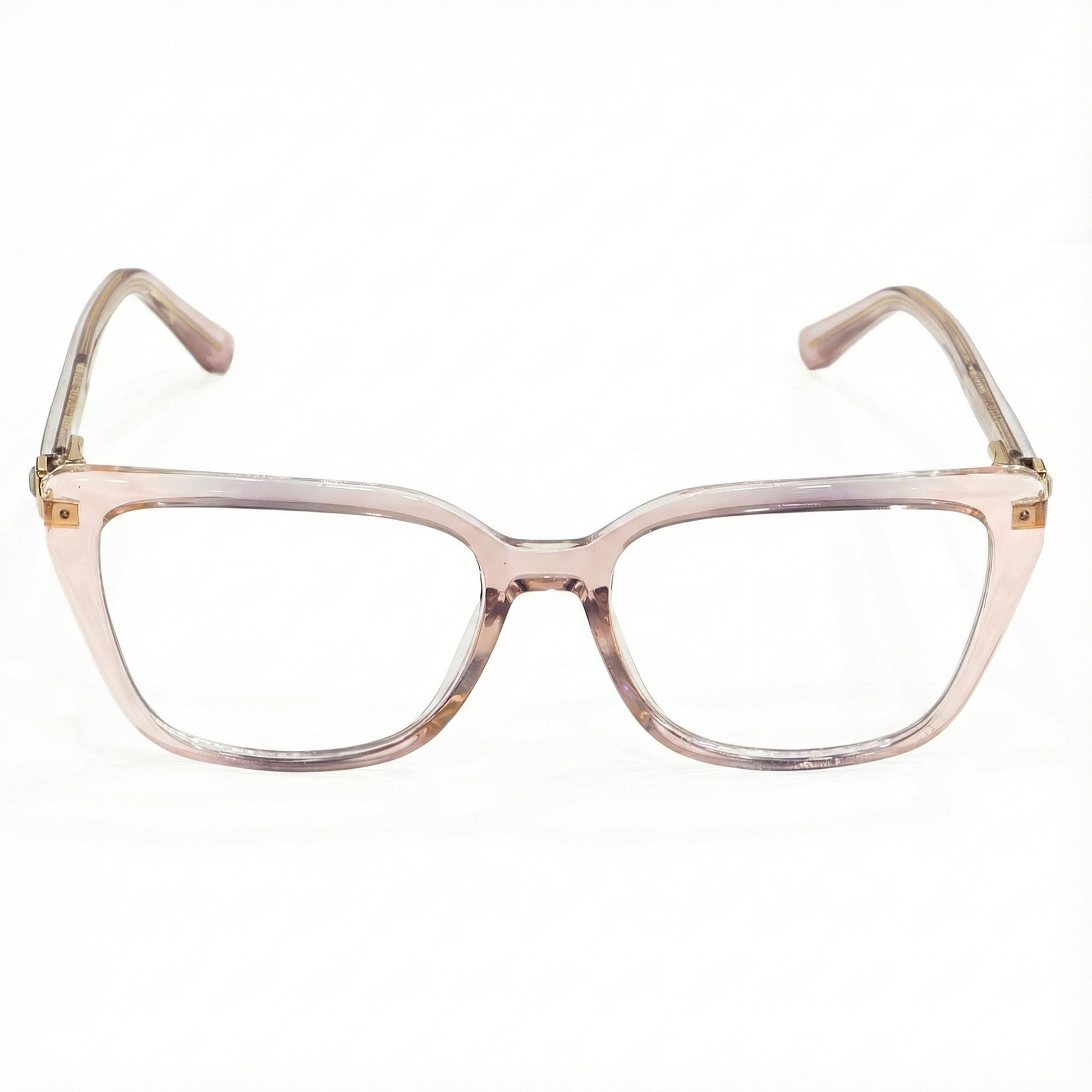 Estas gafas en un elegante tono tranlucido son la elección perfecta para quienes buscan salir de lo convencional sin perder la elegancia. Su diseño de líneas redondeadas suaviza las facciones, aportando un aire intelectual y moderno, mientras que los sutiles detalles dorados en las varillas añaden un acabado de lujo. Perfectas para darle vida a tu look de oficina o para un fin de semana relajado.