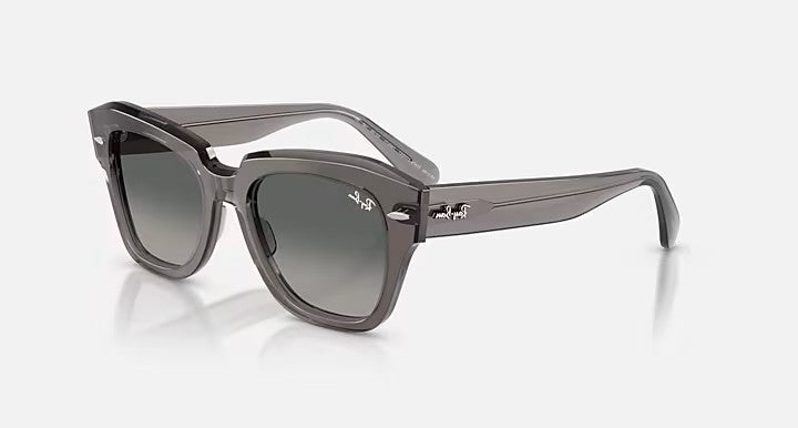 👓 **Ray-Ban STATE STREET: Elegancia Moderna en Cada Detalle** Descubre las gafas de sol Ray-Ban State Street, una reinterpretación sofisticada del icónico diseño cuadrado que define tendencia. 🕶️ ✨ **Características Destacadas:** • Montura de acetato gris transparente con acabado pulido de alta calidad • Lentes grises degradadas que ofrecen protección UV y reducen el deslumbramiento • Forma cuadrada clásica con proporciones modernas y versátiles • Construcción duradera que combina estilo y funcionalidad 🌟 **Perfectas Para:**